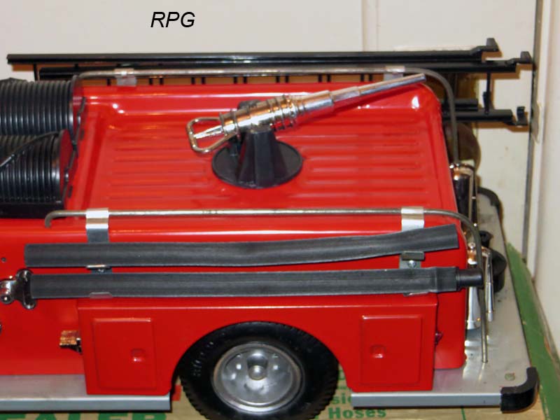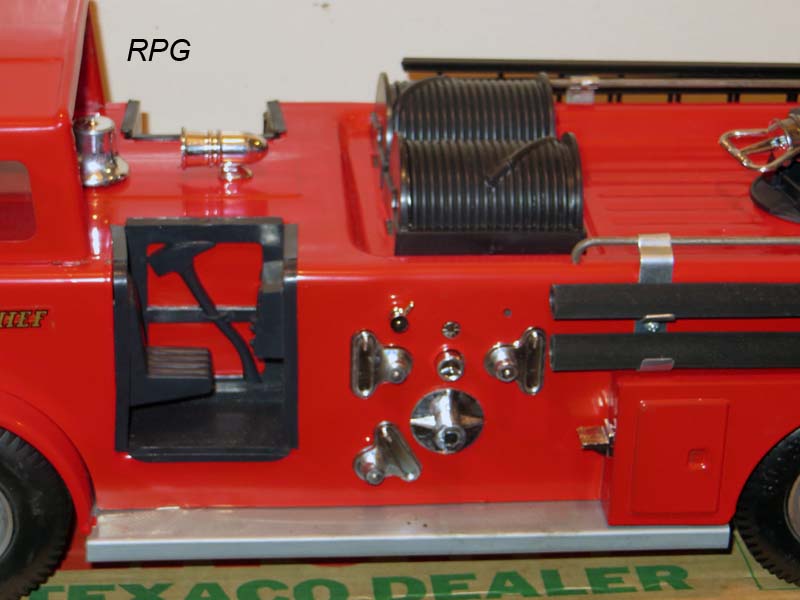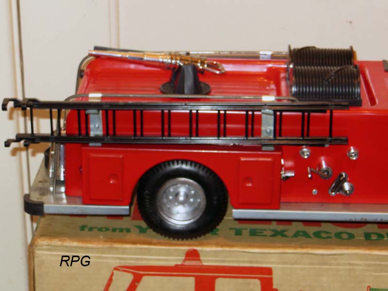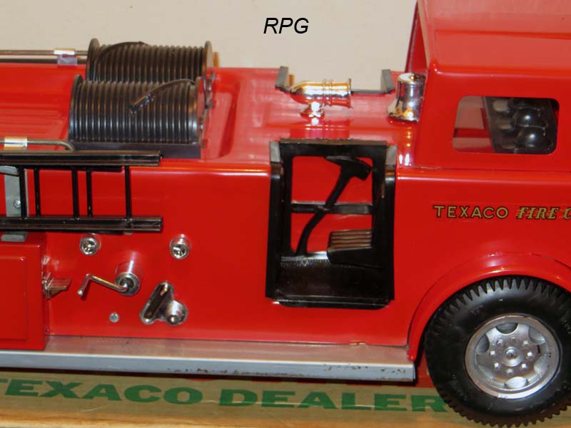 American la france fire Engine. Texaco Co. Pumper with deluge gun. 25 inches long. Has more value with all the accessories as shown in the pictures at bottom. |