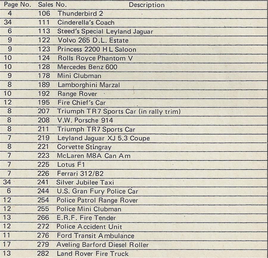included in the 1977 Dinky catalog. The list shows the number of the