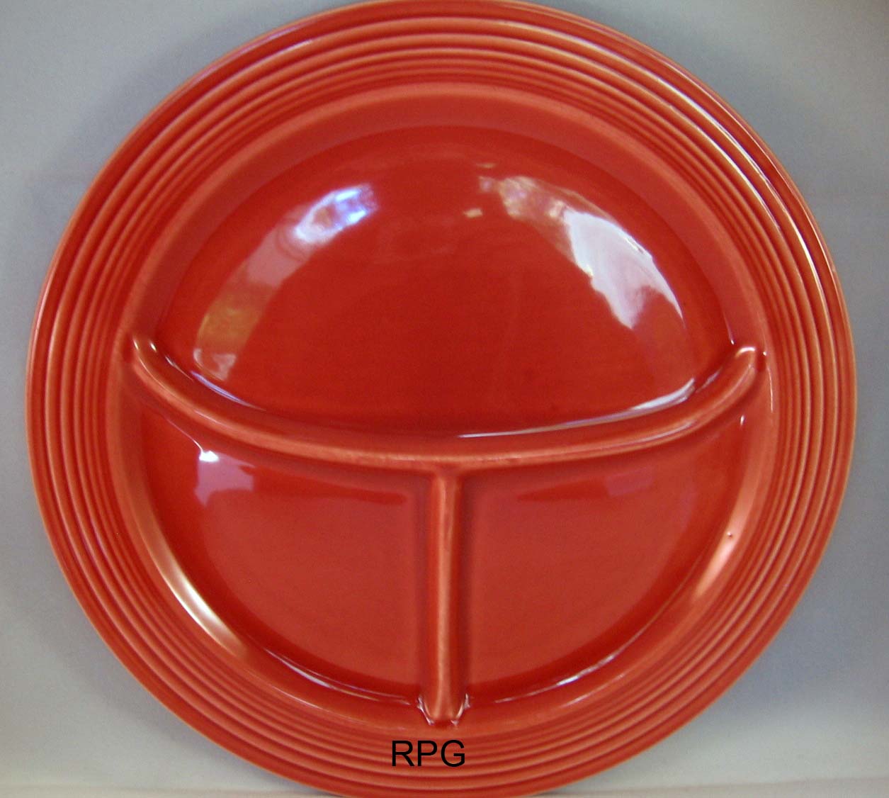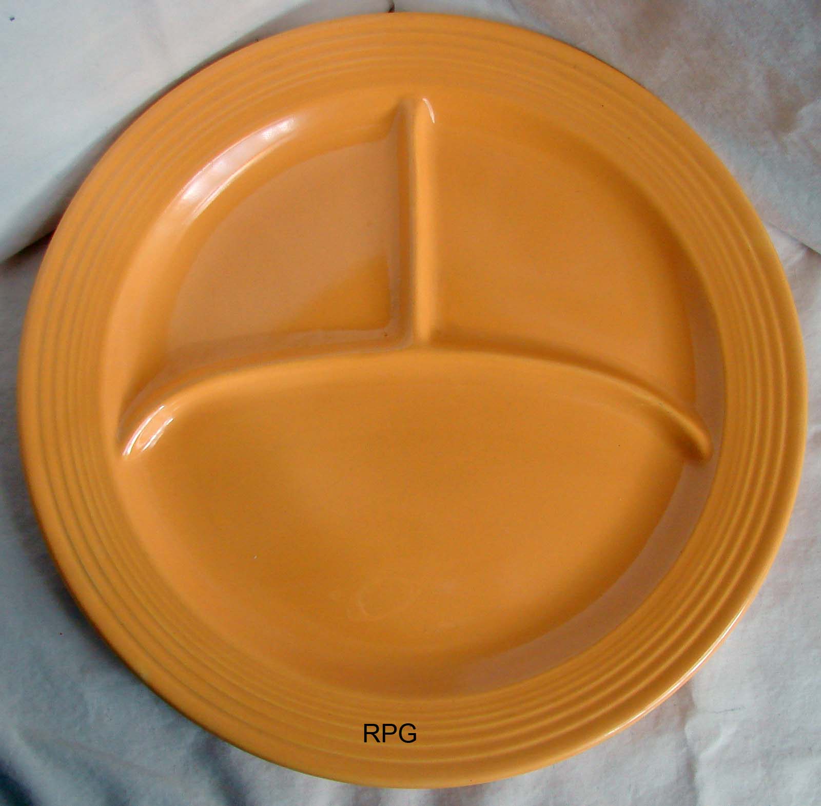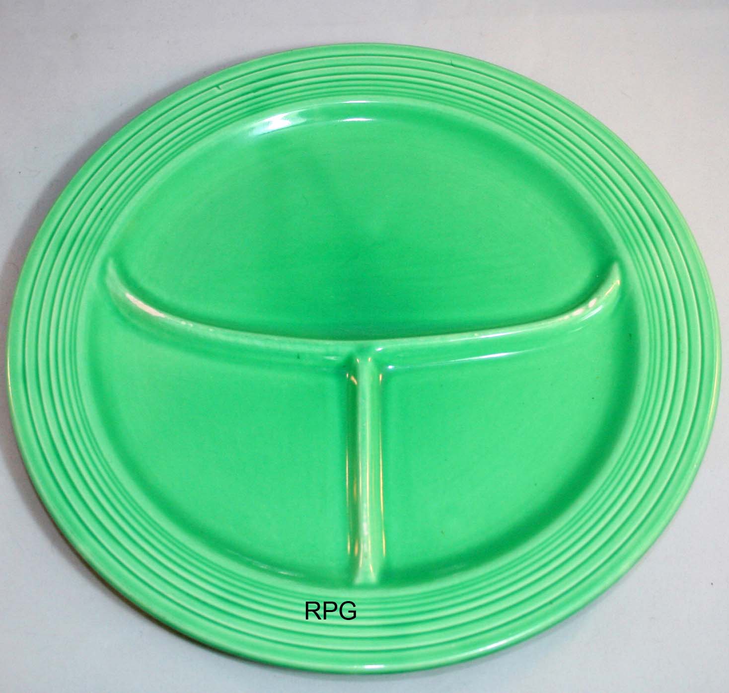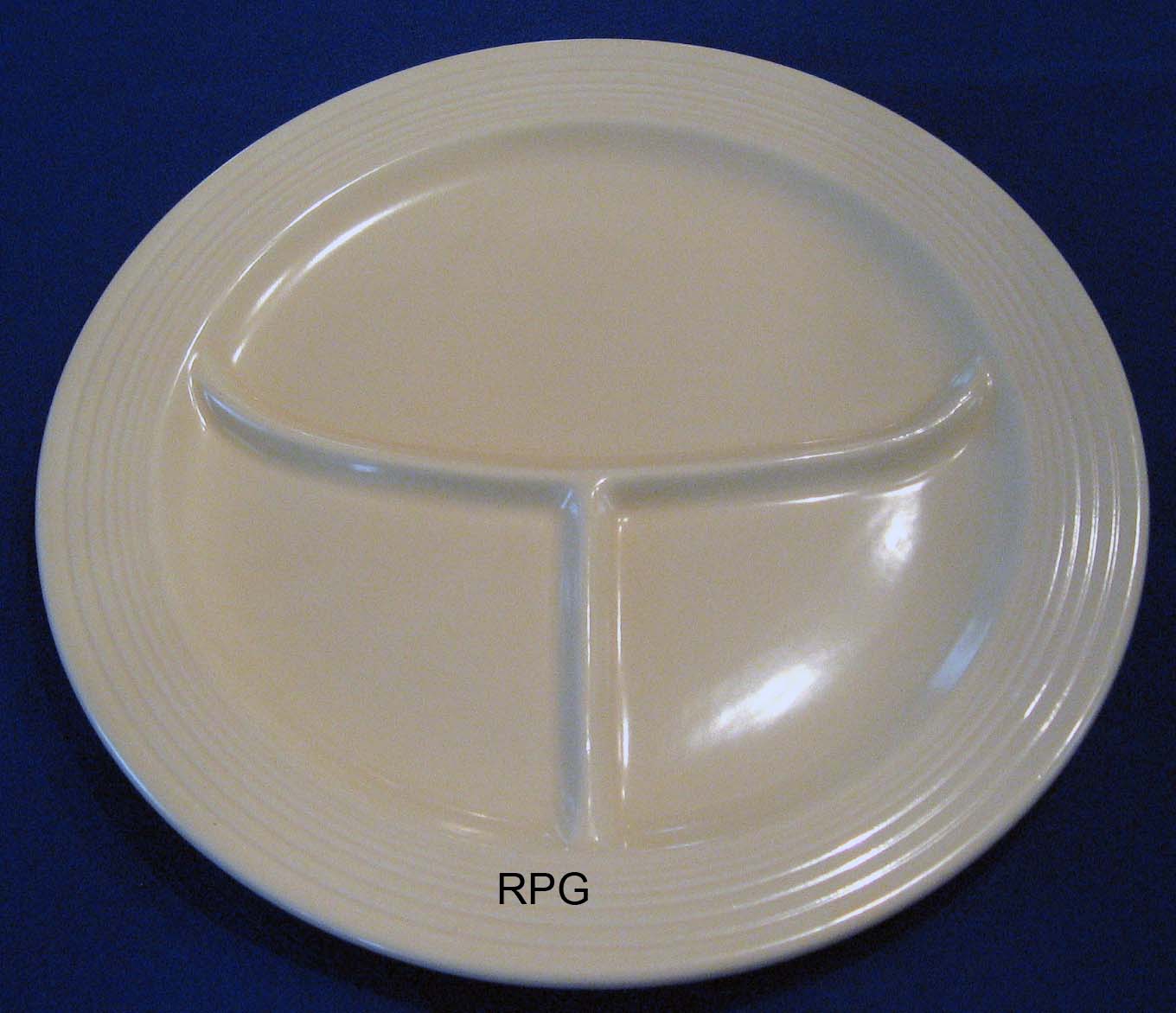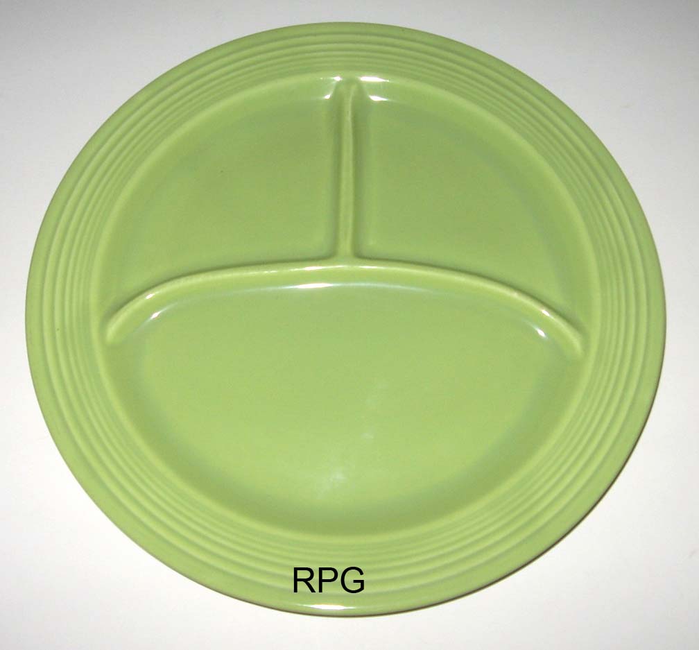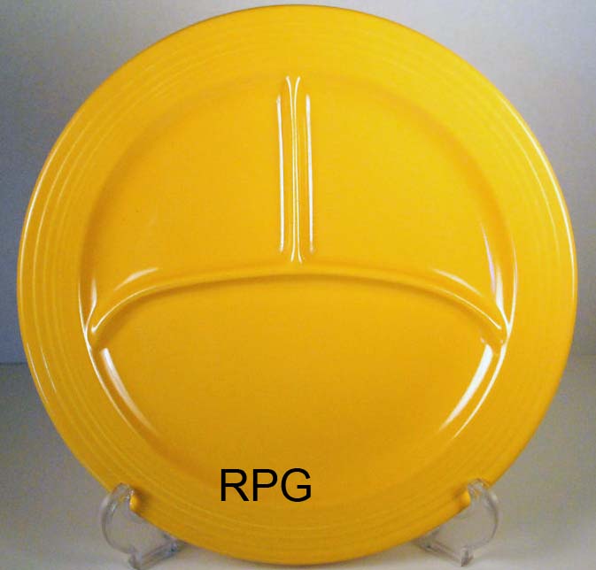The 10 1/2 compartment plate was first introduced in 1937 and was produced until 1959. This plate replaced the larger heavier 12 inch compartment plate which was produced only from 1936 to 1937. Some pieces are not marked and the routine mark is the GENUINE FIESTA mark.