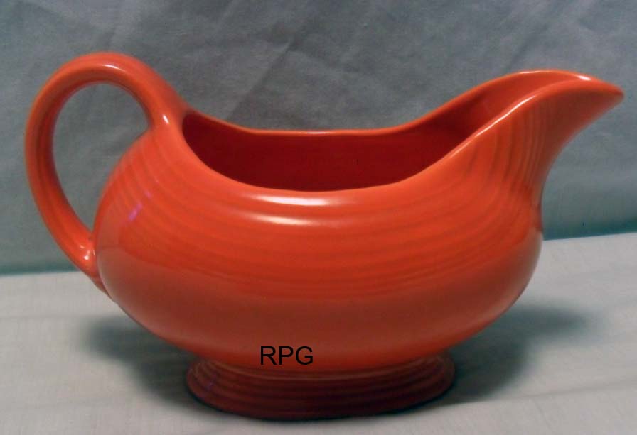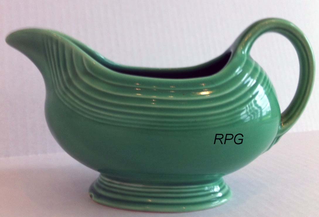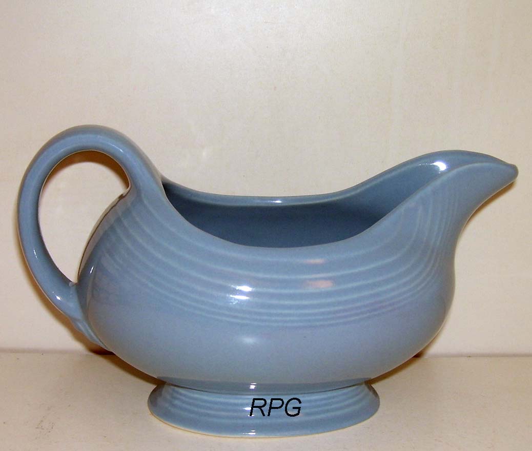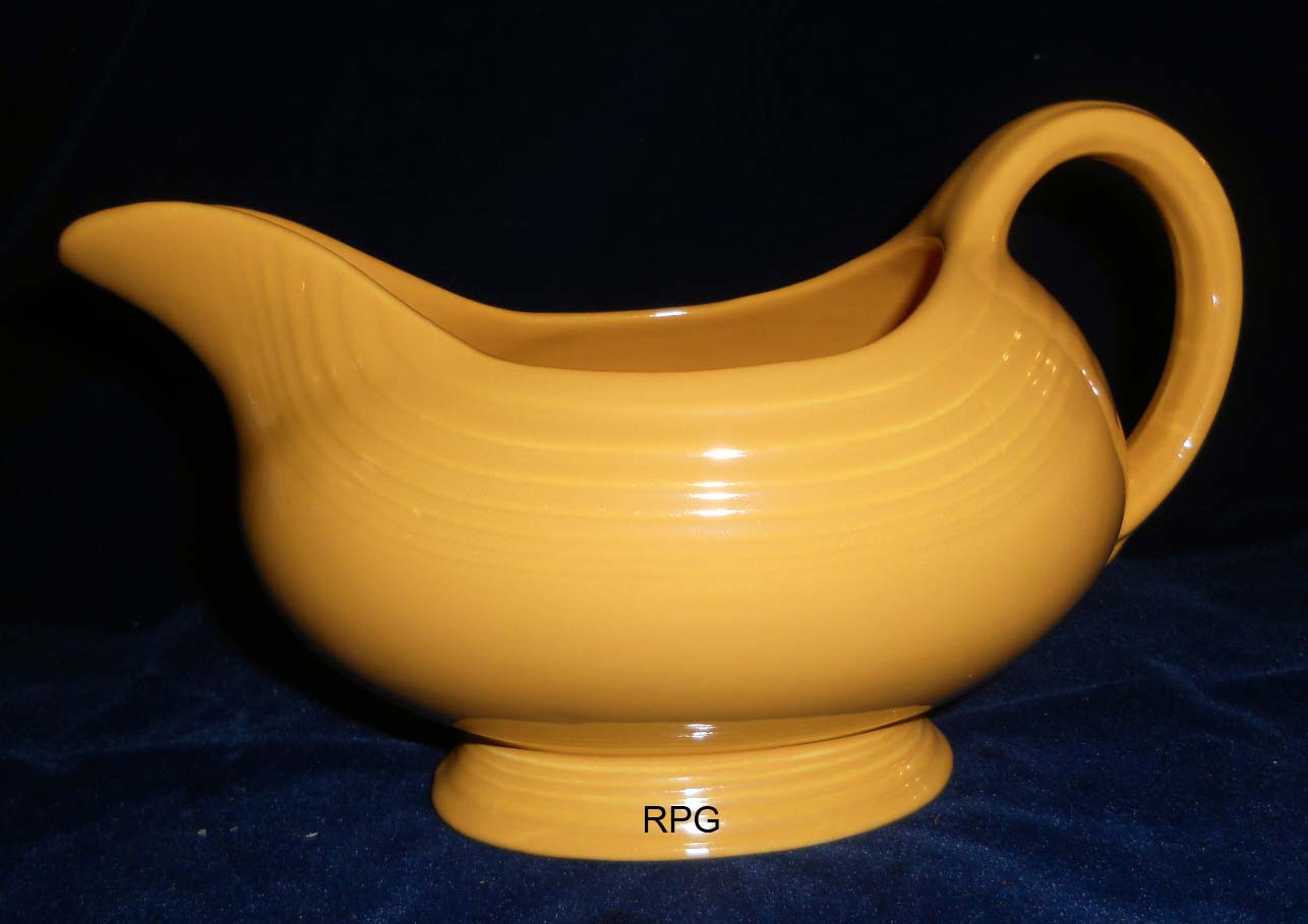 The gravy/sauce boat was produced from 1938 to 169 and of course reproduced after 1986. Original colors were cobalt blue, ivory, light green, red, turquoise, and yellow. Marks for the original was "fiesta HLC USA" and "fiesta Made in the USA". POST 86 pieces used the same vintage molds but a capital H was added to the signature on the bottom of the piece. Still there are some pieces POST 86 that have the same signature as the originals so you will have to pay attention to the colors on some pieces.