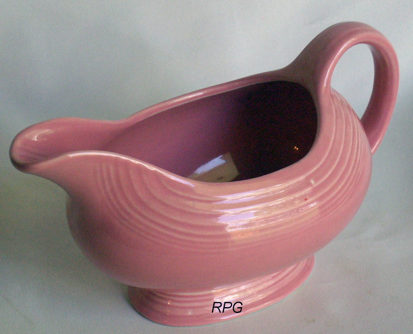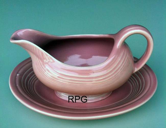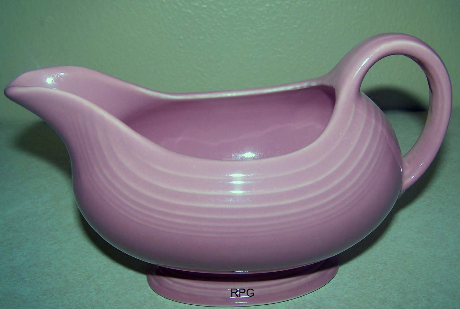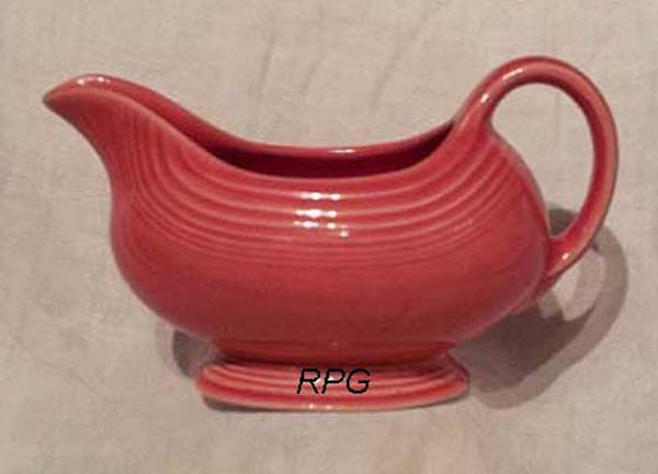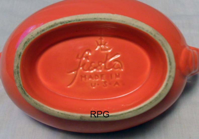 The gravy/sauce boat was produced from 1938 to 169 and of course reproduced after 1986. Original colors were cobalt blue, ivory, light green, red, turquoise, and yellow. Marks for the original was "fiesta HLC USA" and "fiesta Made in the USA". POST 86 pieces used the same vintage molds but a capital H was added to the signature on the bottom of the piece. Still there are some pieces POST 86 that have the same signature as the originals so you will have to pay attention to the colors on some pieces.