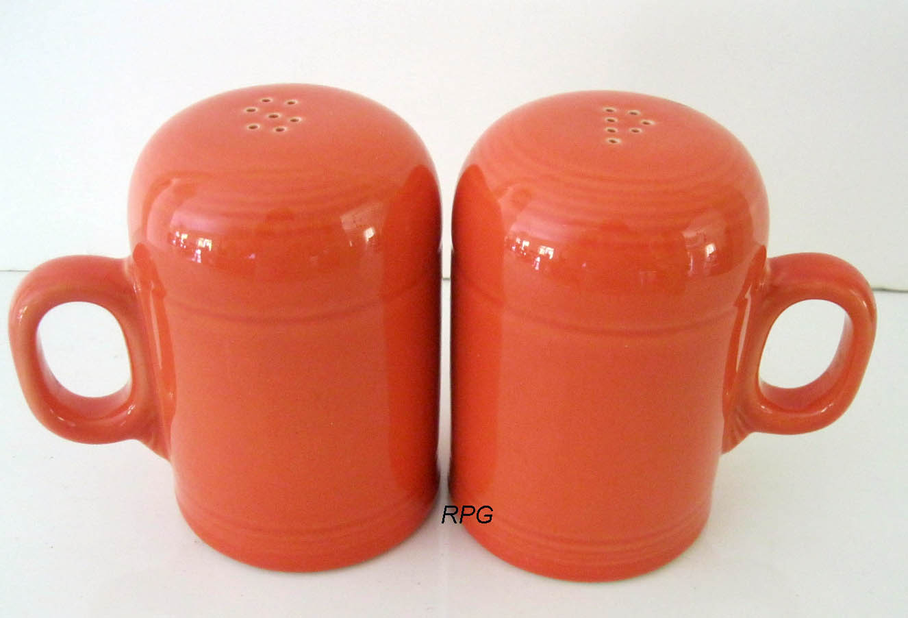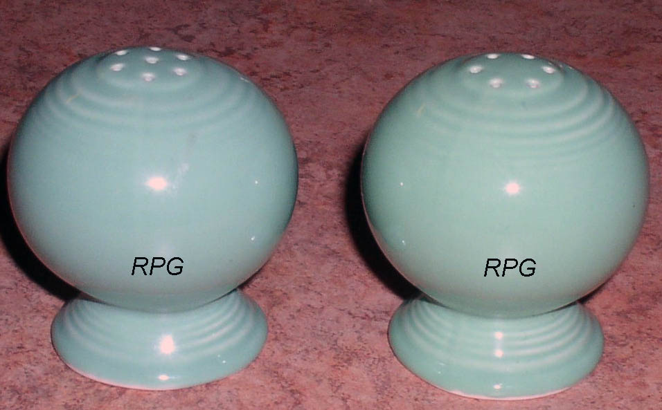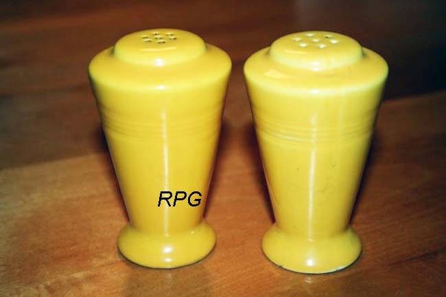 Fiesta did not produce a lot of different salt and pepper sets although there are several sets that are associated with companon lines from Homer Laughlin that are sometimes associated with the fiesta line. The fiesta line first came out with 7 holes and then in 1967 the pieces were produced with 6 holes. The fiesta line foot is higher than the other lines from Homer Laughlin.