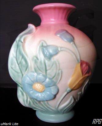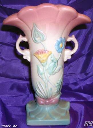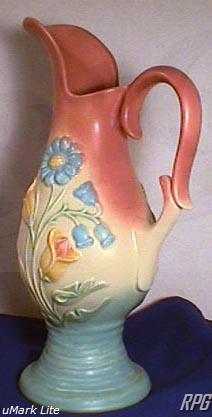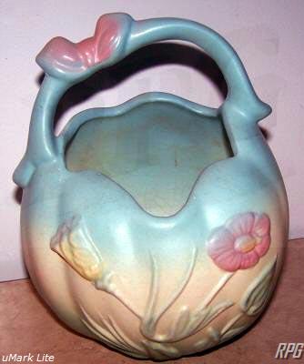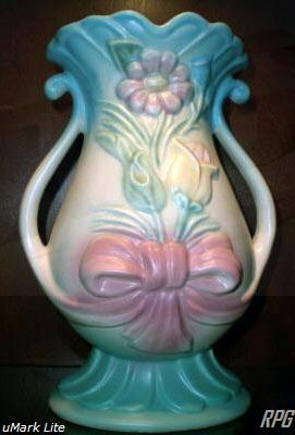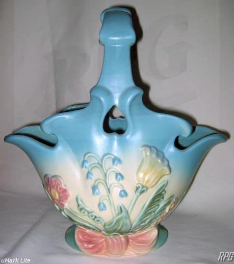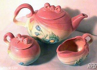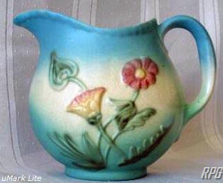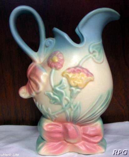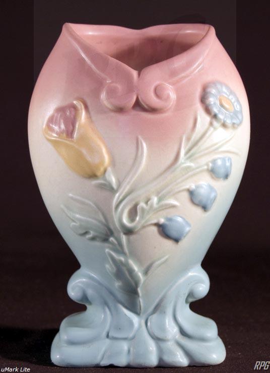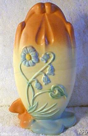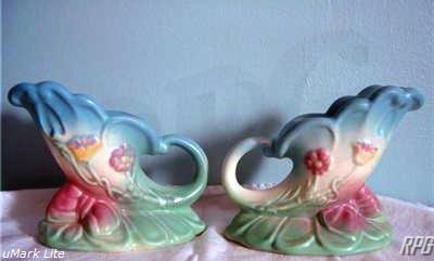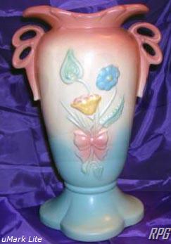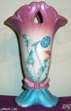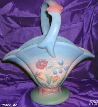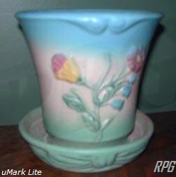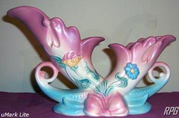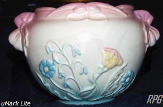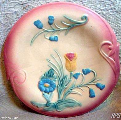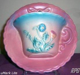 | 1949. Embossed floral design in matte finish of pink and blue or turquoise and blue combination. Line had 29 shapes.