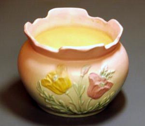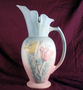Mid 1940's. Hand decorated with embossed poppy flower on duo tone backgrounds of blues and pinks or pinks and creams. at least 12 shapes.