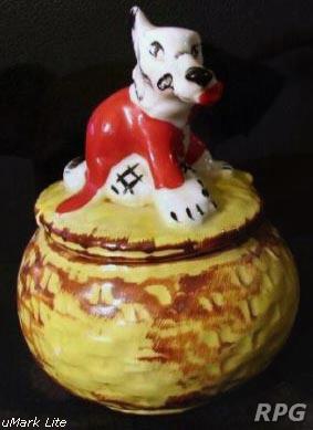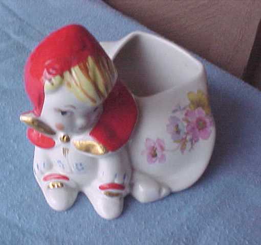 19. Fantasy (never produced by Hull or Regal): Sugar shaker and hat pin holder.