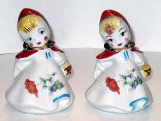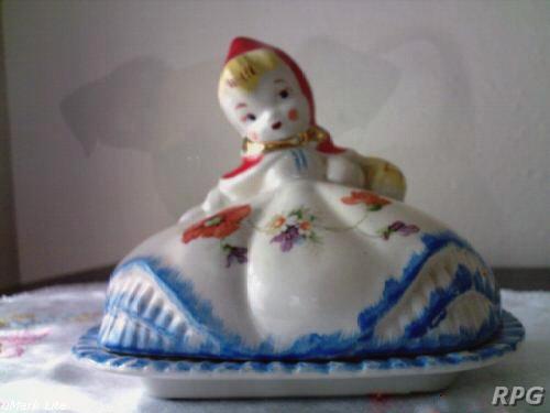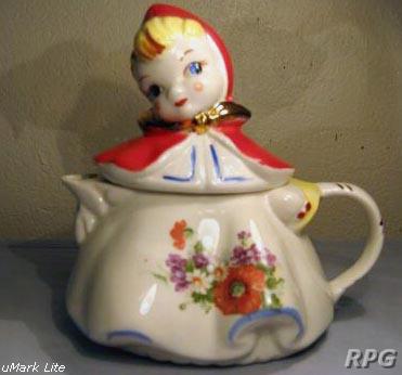 18. Reproduced: Little Red Riding Hood string holders, baby dish, butter dish, teapot, milk pitcher, batter pitcher, cracker jar, match box, mustard