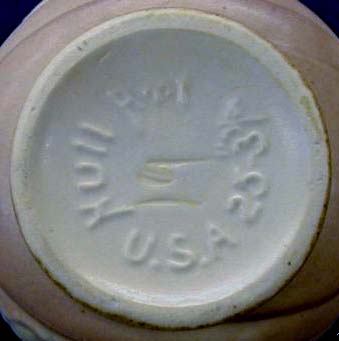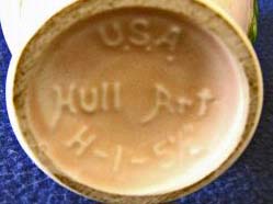 Many of Hull's fifties lines were knnown only by their color treatment such as the Fantasy, Fiesta, gold metal and others. Some were marked with numbers and some were unmarked.