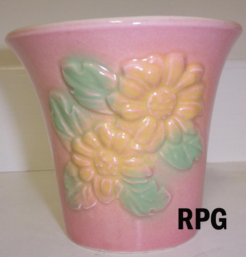 USA. Decoration was hand decorated with an embossed daisy and an embossed pansy sometimes