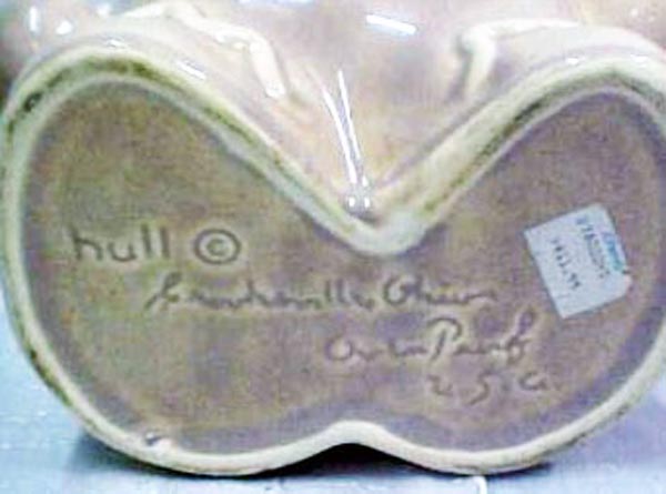 Hull Pottery had numerous signatures on their pottery with some good attributes. One, a lot of the pieces had numbers and letters of the alphabet that allows you to determine the pattern name, the size and the number of the piece.