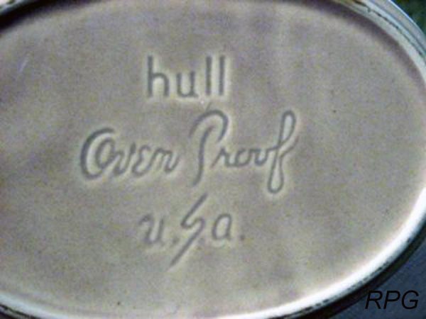 Some pieces also had the name of the pattern signed on the bottom of the piece making identification easy. Hull pottery utilized, embossed and incised marks to identify their products. The following are some of those marks. This covers a large majority of the pottery marks but I am sure not all.