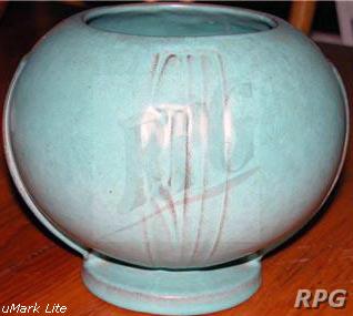Matt green, blue, pink, brown and ivory backgrounds with impressed marks.