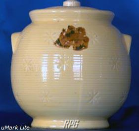 eight point stars and horizonal lines this pattern was available in Yellow, Flax Blue, Turquoise, with the exception of of the mixing bowls which came in two additional colors, Dusty Rose and Old Ivory.