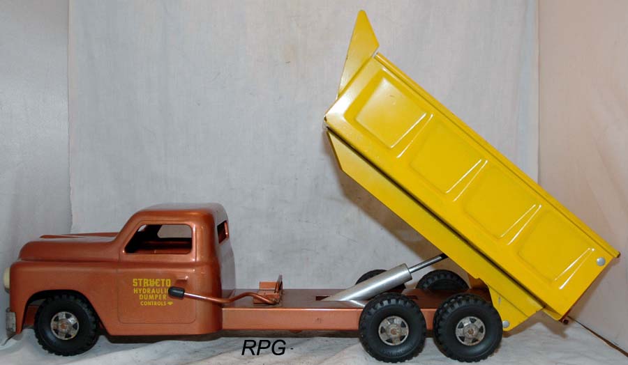 truck 20.5 inches long Copper cab/yellow body. dual wheels on