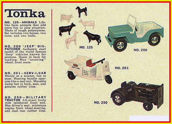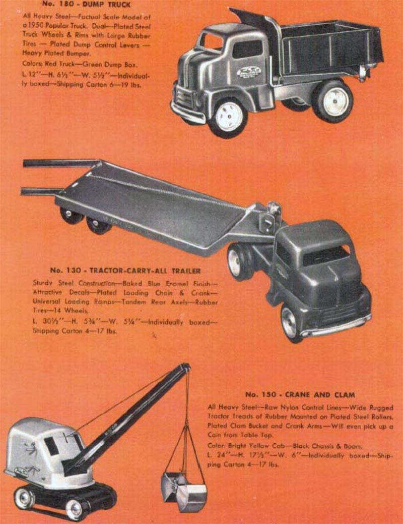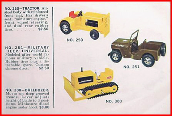 1961, 25-1/2" long Truck, Trailer, Bulldozer |
